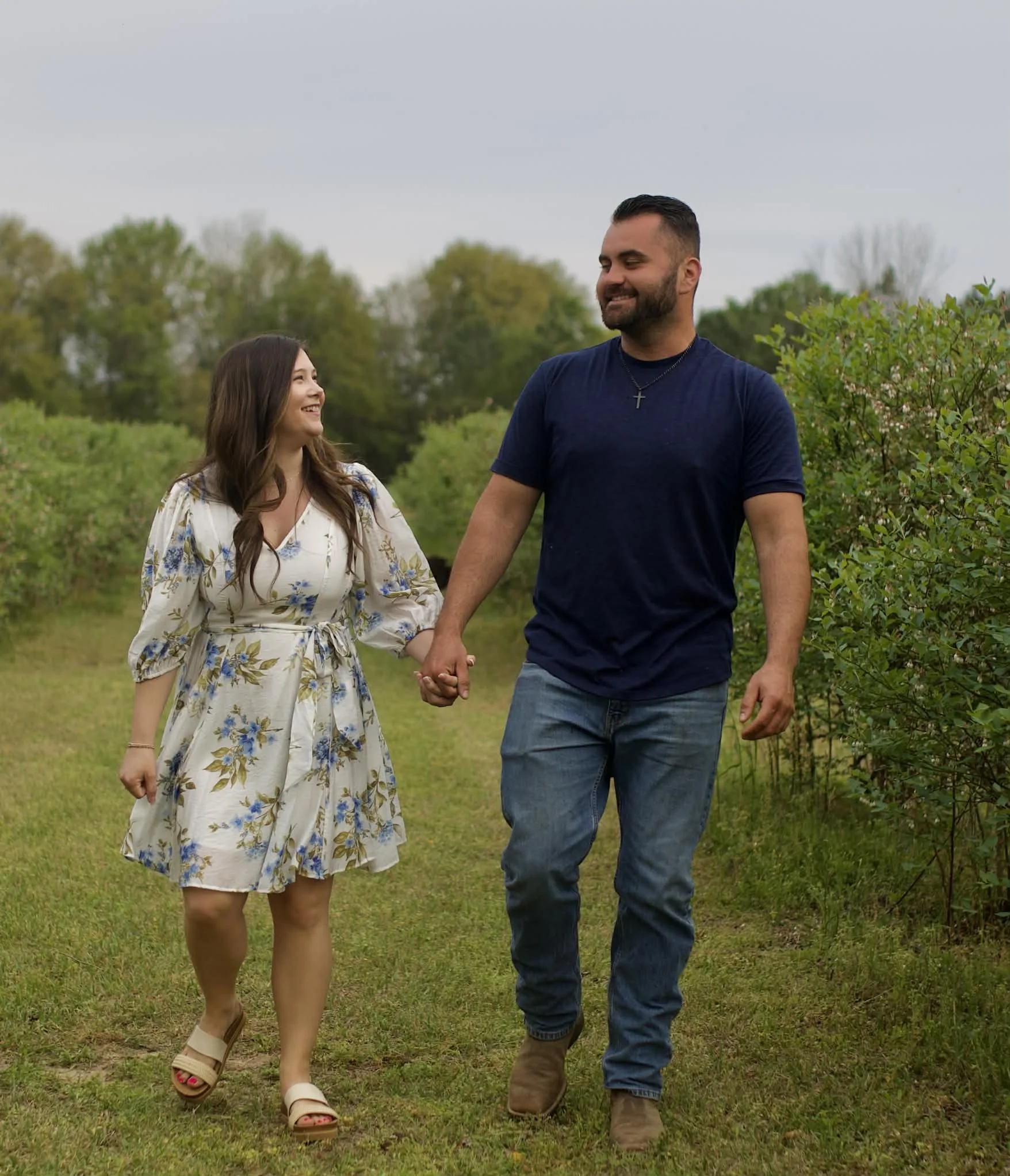 Think spring on the farm! We love seeing guests in dresses, skirts, light layers, or outfits that feel fun and put-together. For men, casual button-downs, polos, or a nice tee with jeans or other comfortable pants work perfectly.